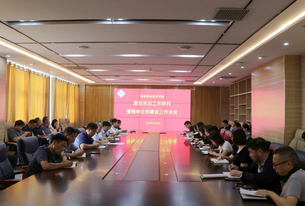 9月26日下午,高等职业技术学院在综合楼十楼第一会议室召开意识形态工作研判暨精神文明建设工作会议,学院领导班子、各相关部门负责人及各系党支部书记、主任参加会议。