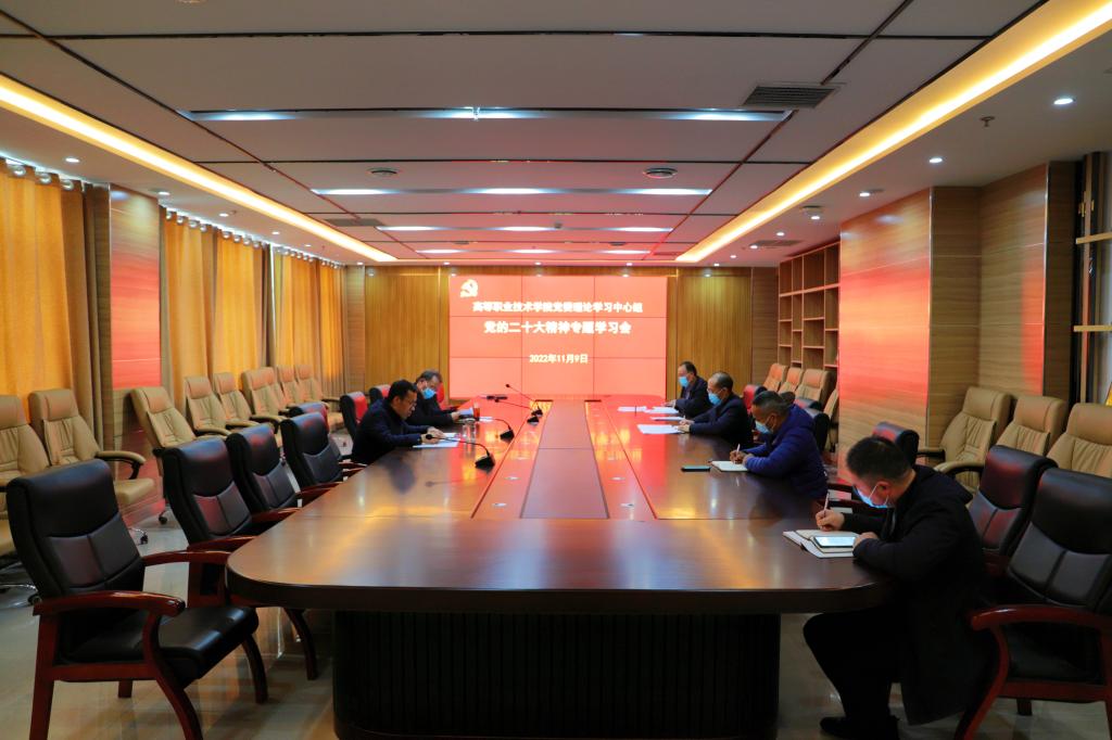 11月9日下午,高等职业技术学院党委理论学习中心组在综合楼第一会议室举行集中学习会,专题学习党的二十大精神。会议由学院党委书记王吉田主持。