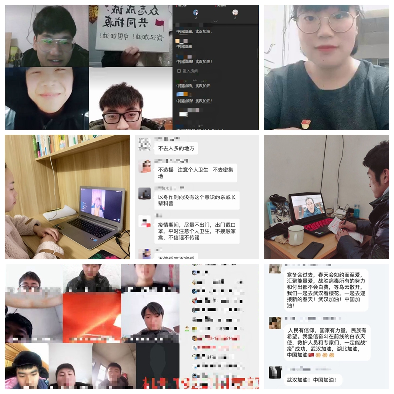 辅导员分别结合所属行政班对学生进行了问候和关注,并及时传达学院关于疫情防控的通知、新型冠状病毒肺炎知识与相关提醒,对同学们比较关注的返校时间进行了解释说明。有效的疏导了疫情关键期,居家网课学生的情绪,较好的掌握了学生的思想状态。大家也纷纷表示要严格自律,认真上好网课,通过不一样的学习方式成长进步,请老师放心等暖心话语。