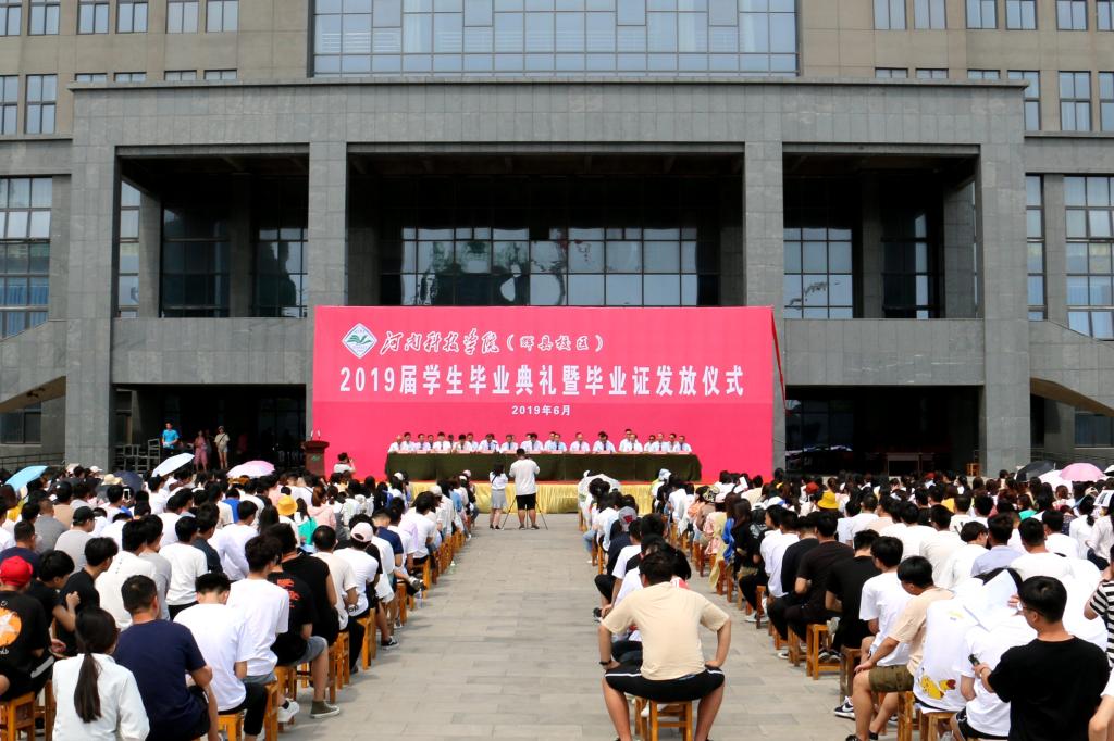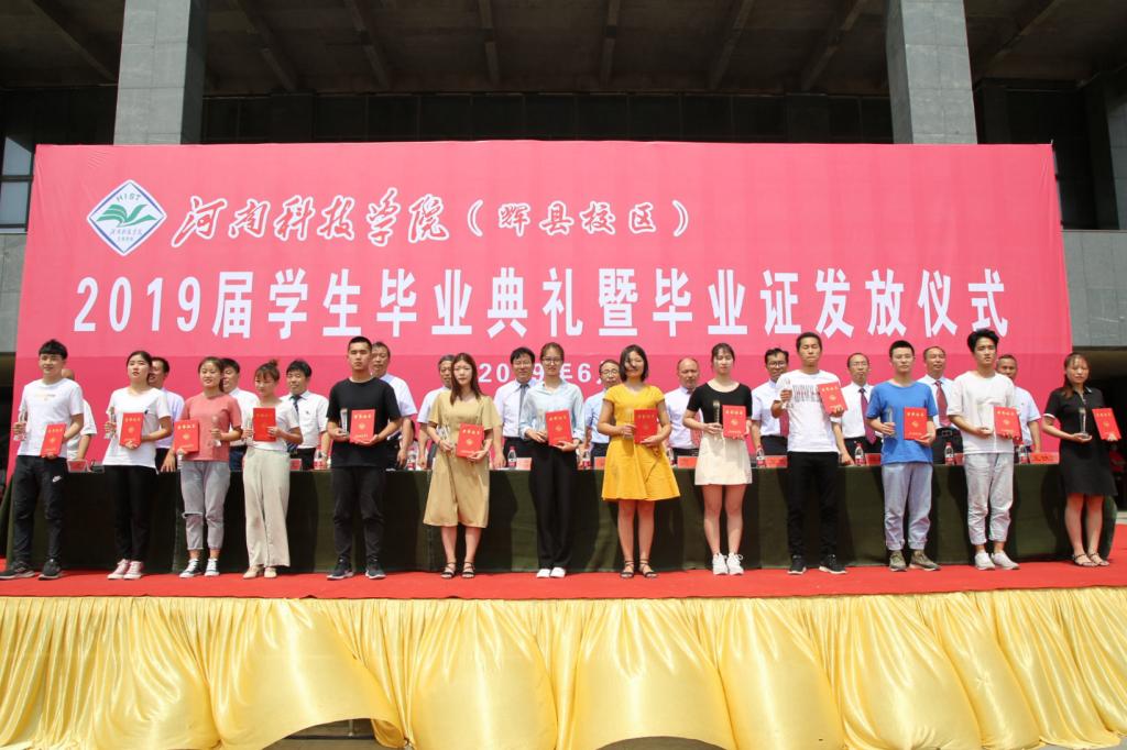 6月13日上午,辉县校区在东区广场举行2019届学生毕业典礼暨毕业证书发放仪式。河南科技学院副校长冯启高、校学生处处长翟居怀、校招生就业处处长巴新华、校长办公室副主任王吉田及高职学院党政领导出席典礼。相关职能部门负责人、最美教职工、优秀毕业生代表及2019届毕业生1500余人参加了毕业典礼。毕业典礼由高职学院院长乐玉忠主持。