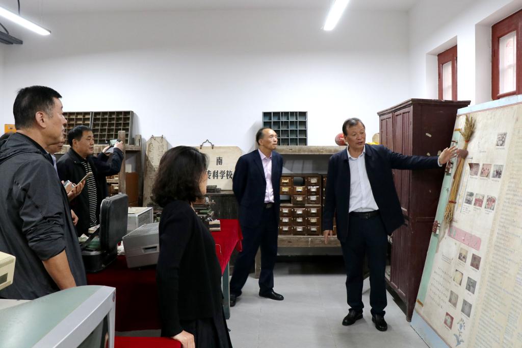 10月11日,我校84级畜产品加工专业校友一行来到百泉校区,在高等职业技术学院负责人的陪同下参观校园、工字楼与黄光正工作室等地。