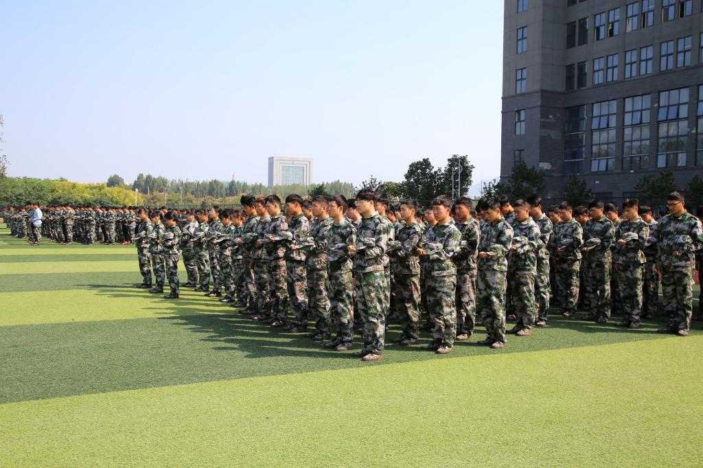 9月18日上午十点,防空警报响起,高职学院军训营全体新生在教官的带领下,脱帽肃立,接受铭记“九·一八”勿忘国耻教育。