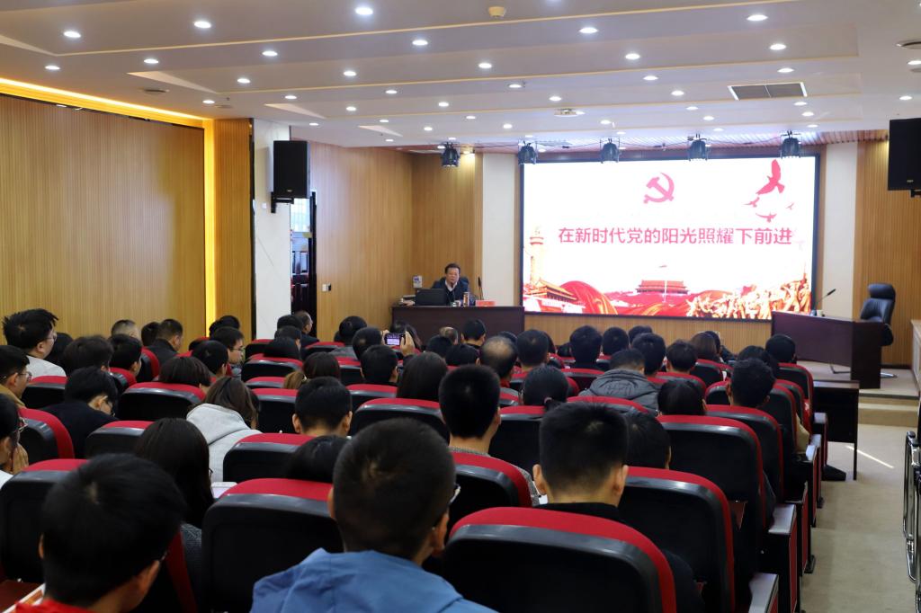 在综合楼阶梯报告厅,校团委书记于江傲结合当前学校与各学院共青团工作实际,向全体学工干部及学生代表做了《在新时代党的阳光照耀下前进》的报告。本次报告围绕共青团深化改革的新形势、新背景下,新时期青年所担负的使命、党和国家领导人对于青年成长的关切及新时代共青团发展等方面展开论述,提出较为切实可行的思考和建议,对今后共青团工作的开展进行指导。