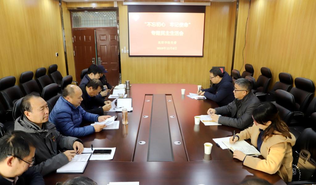 12月6日,高职学院召开“不忘初心 牢记使命”专题民主生活会。学校第一督促指导组到会指导,学院领导班子全体成员参加。会议由高职学院党委书记高跃主持。