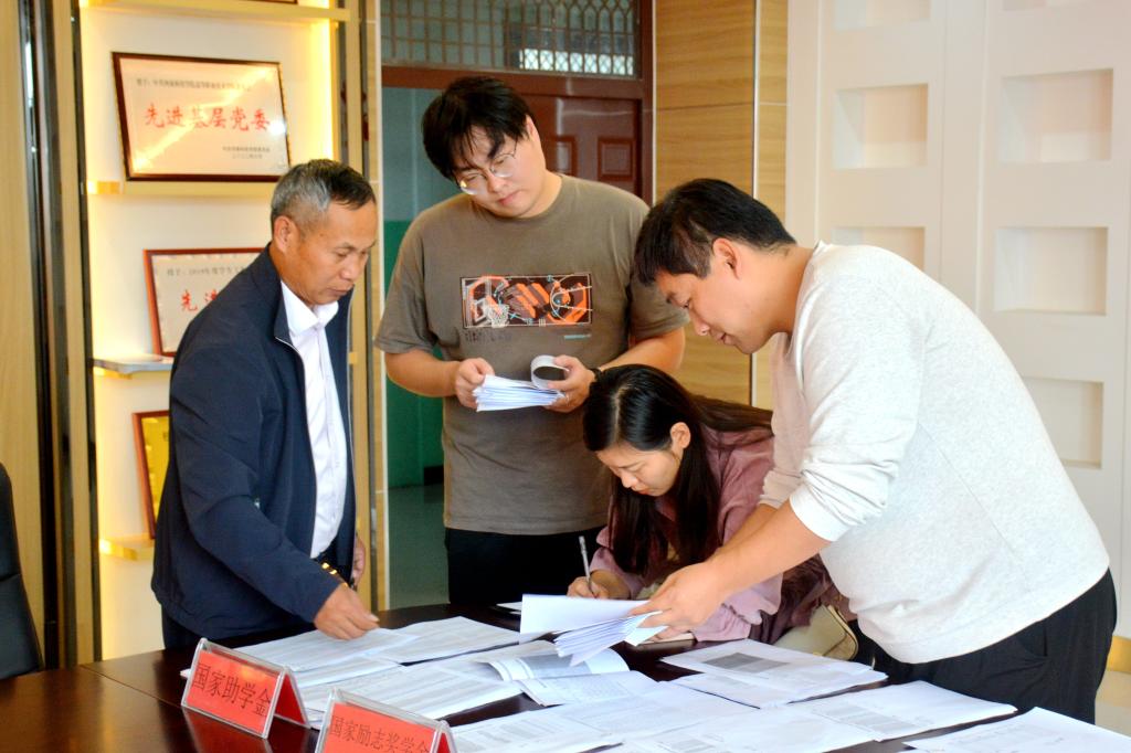 10月8日,高等职业技术学院在综合楼十楼会议室召开2023年国家奖助学金评审会。学院党委书记孙敬坤、副书记张高峰、副院长王铁固出席会议,学生科、教务科、财务科等相关科室负责人,各系党支部书记和主任参加了评审会。会议由学生科科长丁文玉主持。