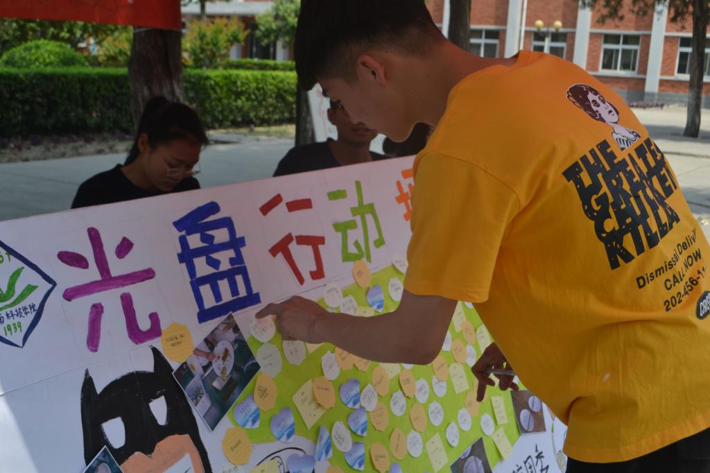 活动前期,院团委开展了一系列宣传活动,介绍食物浪费现状,让同学们充分了解了活动的意义和价值。活动中全体师生积极参与,纷纷在条幅和便利贴上签名寄语,学生在每次饭后将光盘照片和感想在微信朋友圈转发。