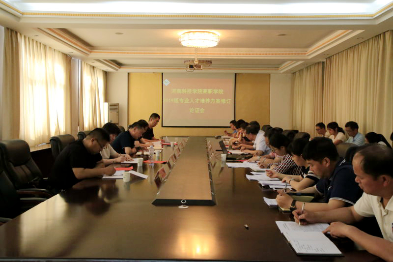 5月24日下午,高职学院在行政楼第二会议室召开2019版专业人才培养方案制定工作的指导意见论证会。论证会邀请了河南科技学院教务处处长王自良、河南工学院教务处副处长程雪利、河南科技学院教务处副处长赵新亮、新乡职业技术学院数控技术系主任李智慧、河南经贸技师学院教务处副主任于淼。院长乐玉忠、副院长吴艳兵、王铁固出席会议,相关职能部门和各教学系部负责人参加会议。会议由副院长王铁固主持。