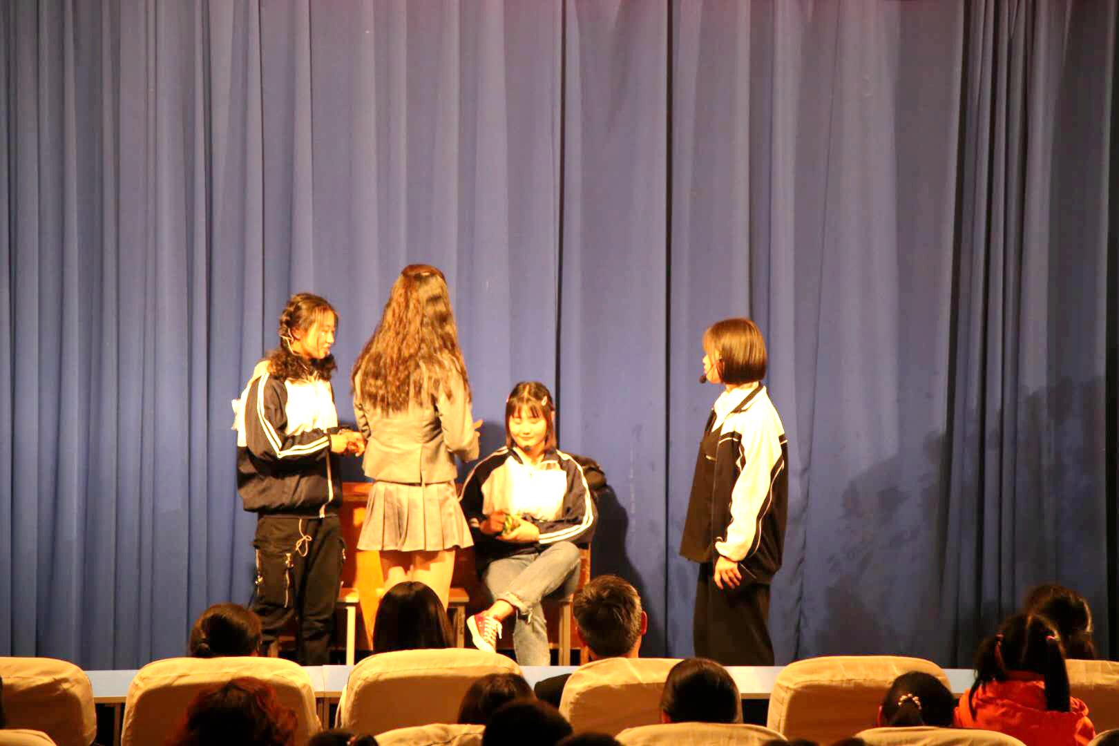 话剧取材于作家郭敬明的同名小说,以《黎明前的曙光》、《反击吧,少女》、《分开的岔路口》和《黑暗中的深渊》的四幕表演,讲述了和平中学校园里易遥、齐铭、顾森湘和顾森西等同学的校园内外纠葛的成长故事。演员们在舞台上用精湛的演技将人物形象刻画得格外鲜活,赢得了师生们的阵阵掌声。悲悯婉转的故事,入木三分的表演,美轮美奂的舞台,让在场的师生感受到了话剧的魅力,感受到了高雅艺术的魅力。