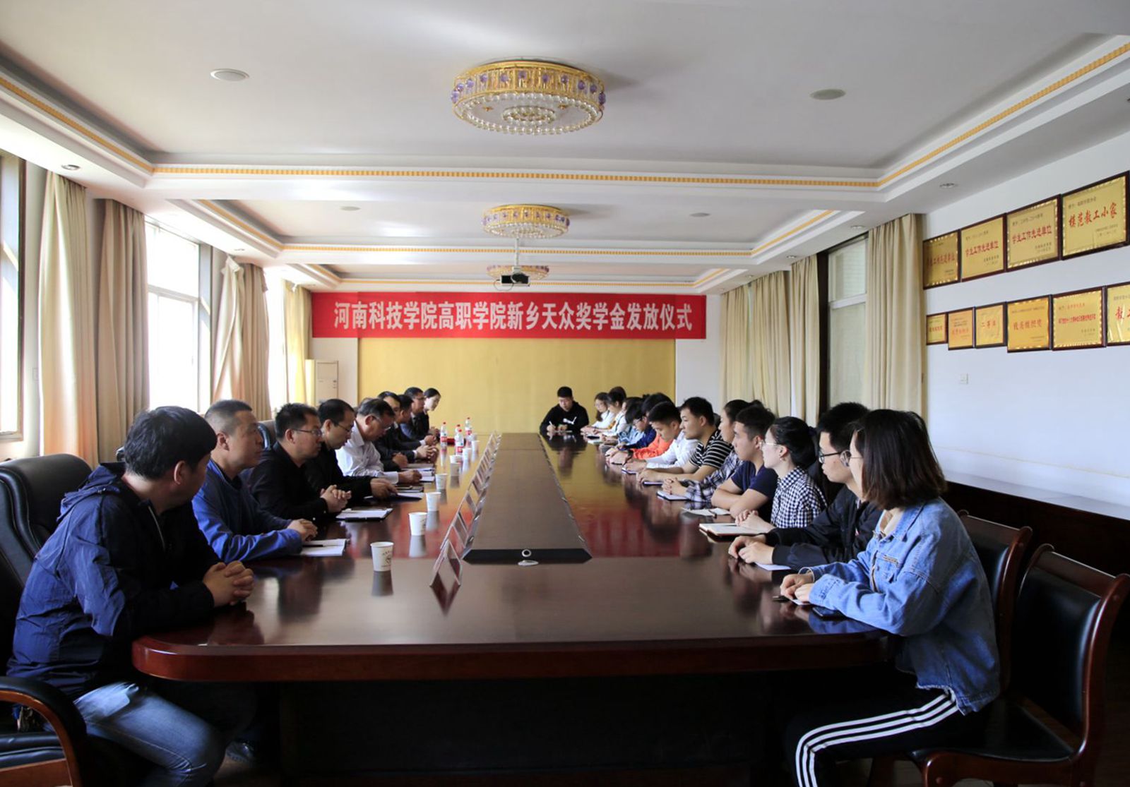 乐玉忠宣读了2018年度新乡天众奖学金获奖学生名单。学生代表进行了发言。