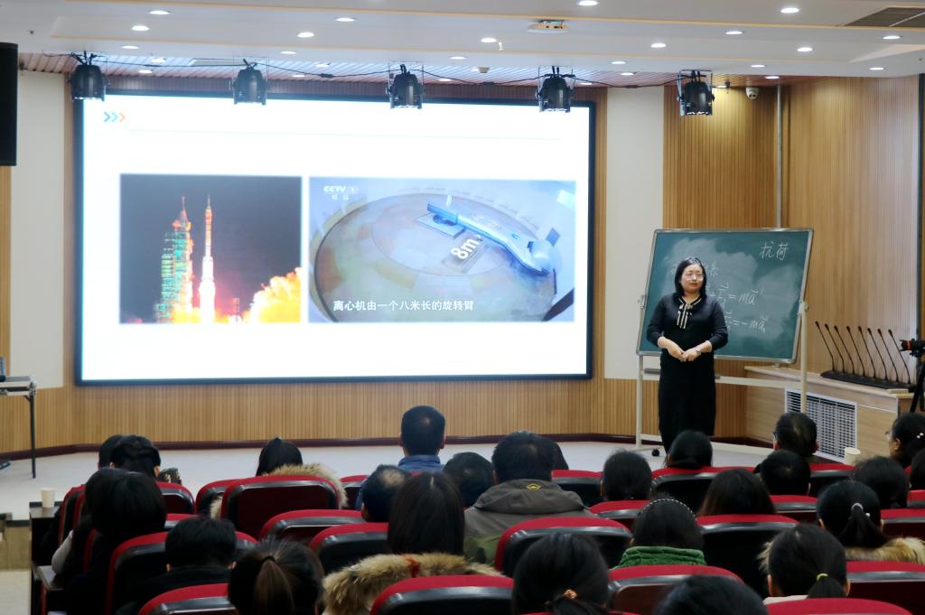 苏喜庆与在场教师分享了从教感悟,然后讲解了《文学概论》的文本层次知识,整节课教学理念先进,教学方法新颖独特,教学手段灵活多样,富有激情和感染力,并分享了新时代课堂标准和金课标准;崔小敏形象生动、深入浅出地讲解了“惯性力”知识,案例典型而有代表性,课件设计简明扼要,将理论知识与航天精神紧密而巧妙结合起来。两位教师的教学展示精彩至极,获得在场教师的阵阵掌声。