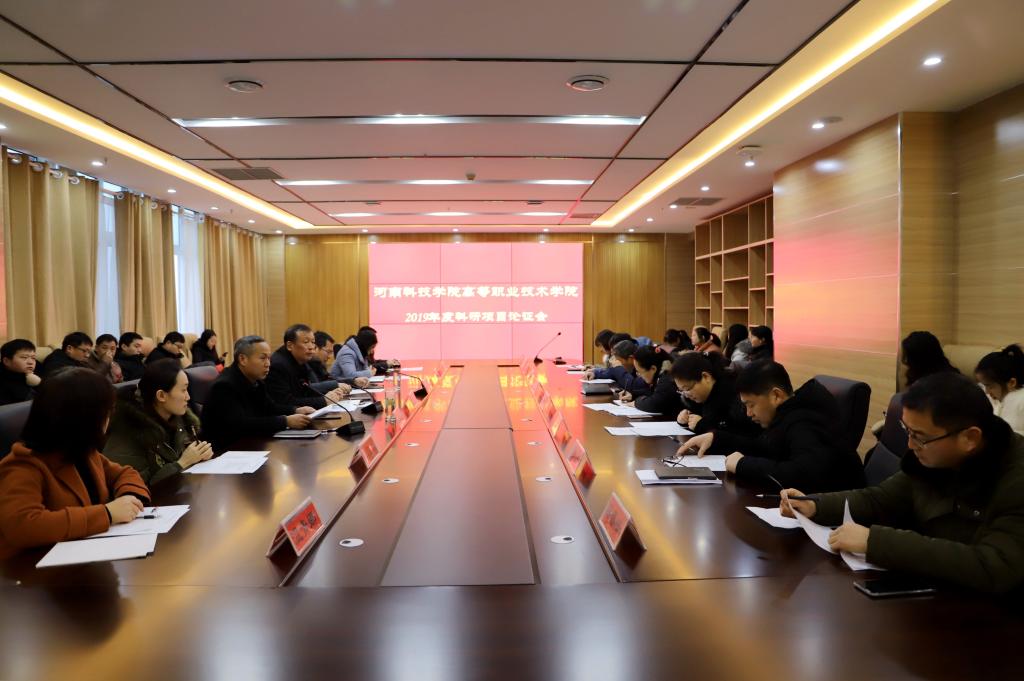 1月9日上午,高职学院2019年度科研项目论证会在综合楼十楼会议室召开,院长乐玉忠、副院长吴艳兵、院评审委员会成员及各项目负责人、项目组主要成员40余人参加了会议。会议由副院长王铁固主持。