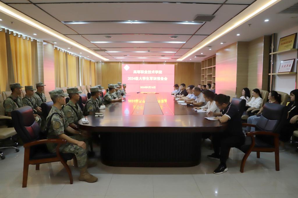 为保障军训工作安全、平稳、有序开展,9月16日上午,高等职业技术学院在综合楼十楼第一会议室召开2024级大学生军训预备会。学院党委副书记张高峰、副院长王铁固、学生科负责人、各系书记和辅导员,32145部队副连长邢洪运和12名军训教官出席会议。会议由张高峰主持。
