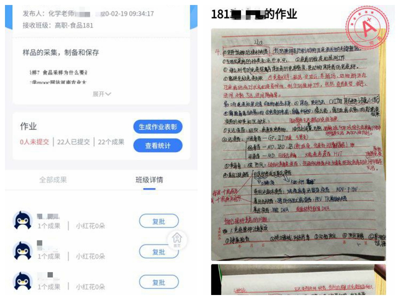 自2月17日开展线上教学以来,高职学院共开出课程171门。任课教师均能引导学生加入教师所要求的课程平台、QQ群、微信群,均在课表时间内授课,并通过各种方式通知学生线上教学组织方式和有关教学要求等;绝大多数教师上传了课件、视频等教学资源,线上教学准备到位。任课教师通过QQ群、微信群、钉钉群、腾讯会议等,采用直播授课、录播授课、混合式、PPT加语音等形式开展线上教学。任课教师认真组织从课前导学、授课、课堂讨论、辅导答疑到布置与批改作业的教学流程。从检查情况看,100%的课程开展了讨论、辅导与答疑,97.76%的课程布置了作业,大多数已完成批改。