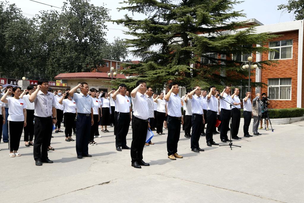为热烈庆祝中国共产党成立100周年,大力营造在党爱党、在党为党的浓厚氛围,6月30日上午,高职学院党委组织164名教职工及学生党员、部分入党积极分子代表,在校内工字楼前举行新党员入党宣誓和老党员重温入党誓词仪式。