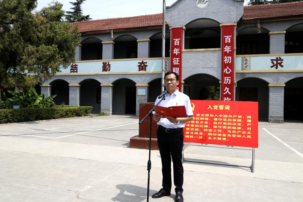在党委书记王吉田带领下,新党员面对鲜艳的党旗进行庄严宣誓,老党员一同重温了入党誓词。
