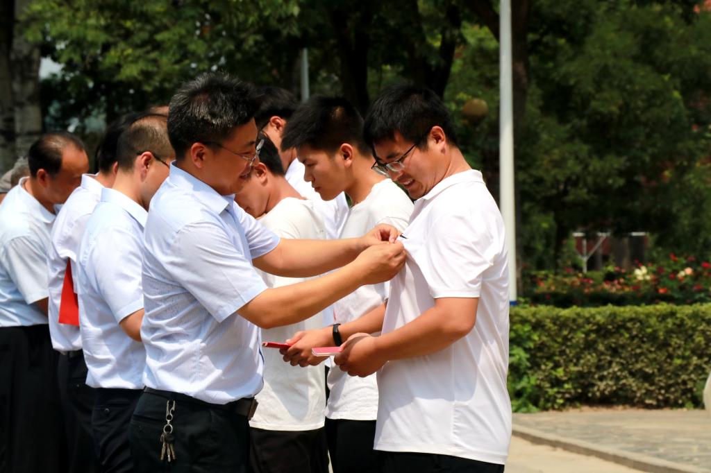 老党员首先为新党员佩戴了党徽,发放了党章和党费证。