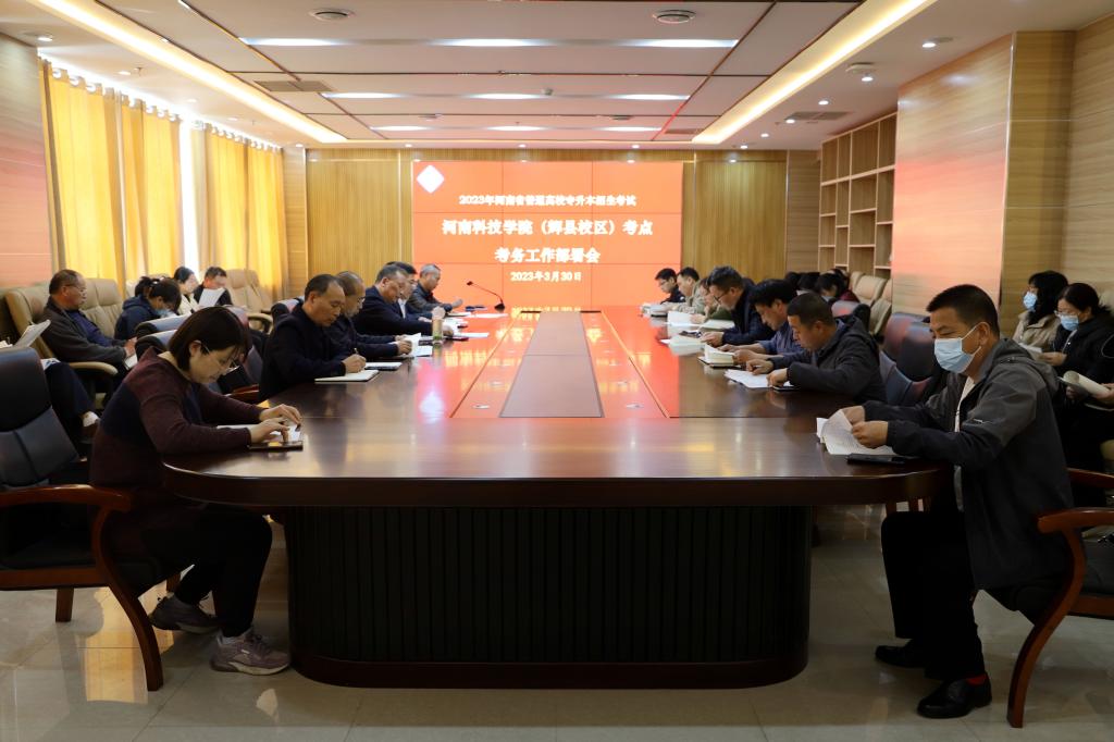 3月30日下午,高等职业技术学院在综合楼10楼第一会议室召开2023年河南省普通高校专升本招生考试河南科技学院(辉县校区)考点考务工作部署会,学院全体领导班子成员、各系主任、副书记及考务相关人员参加会议。副院长王铁固主持会议。