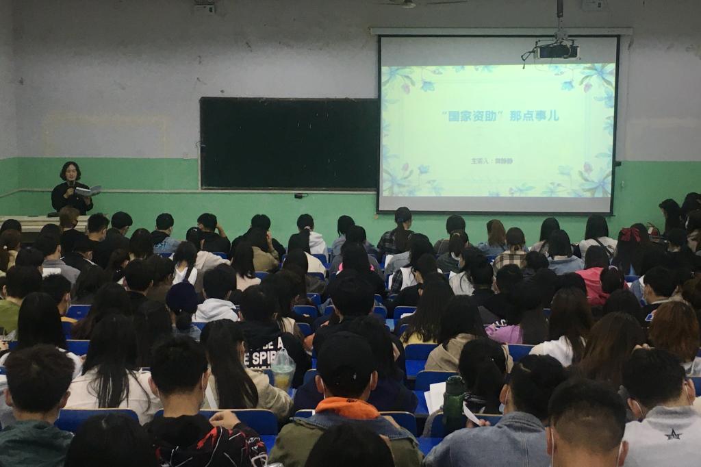 在资助知识宣讲环节,辅导员对国家资助政策进行讲解,对相关热点问题进行回答,同时请部分同学讨论对资助政策的理解。