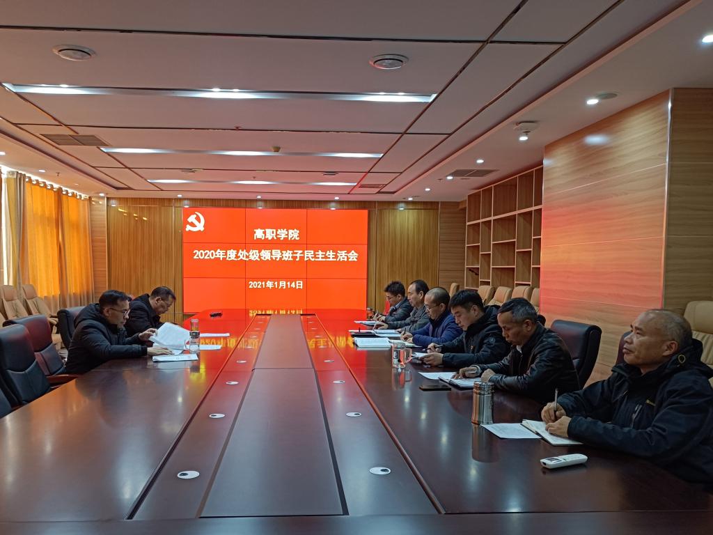 1月14日下午,高职学院在综合楼十楼会议室召开处级领导班子民主生活会。班子成员王吉田、乐玉忠、孙敬坤、申长奎、宋合成、王铁固、李勇超、丁福虎参加会议。会议由党委书记王吉田主持。