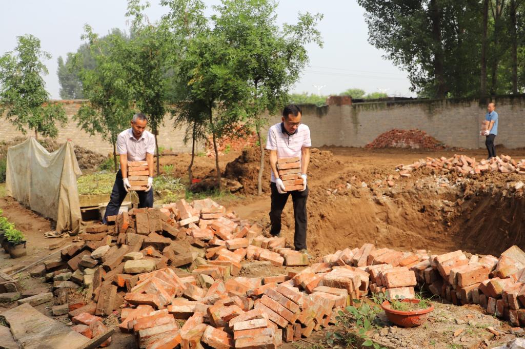 为优化实践教学体系,拓展人才培养模式,合理建设校内实训基地,暑假里,高职学院传承“百农精神”,将校园西北角花园暖房重新设计规划,改建为园艺园林实训中心。学院领导班子与学生科、后勤科、资产科、保卫科、辅导员等30余名同志一起参与施工建设。