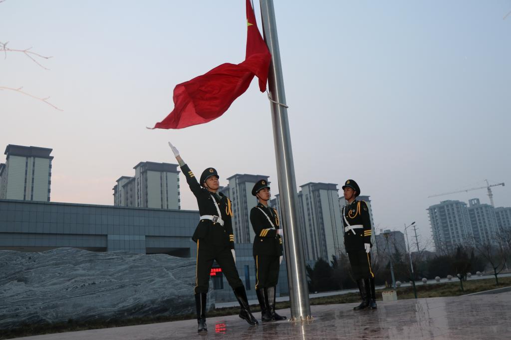 3月8日,为迎接新学期的到来,按照疫情防控要求,高职学院在综合楼广场举行升国旗仪式。仪式仅有学院国旗护卫队队员到场,没有师生教工参加,避免人群聚集。