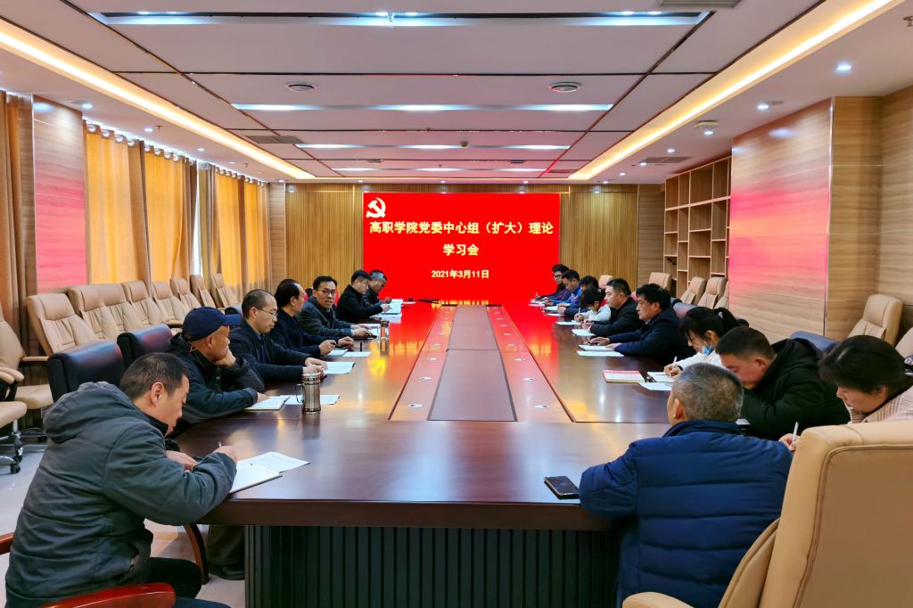 3月11日下午,高职学院党委理论学习中心组在综合楼10楼会议室举行集中学习会,全体班子成员及各党支部书记、副书记等20余人参加学习会。会议由党委书记王吉田主持。