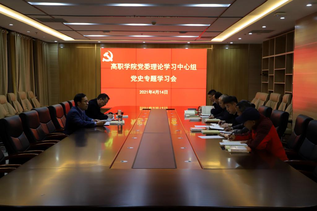 4月14日晚,高职学院党委理论学习中心组在综合楼十楼会议室举行党史专题集中学习会,学院全体领导班子成员参加学习。学习会由党委书记王吉田主持。