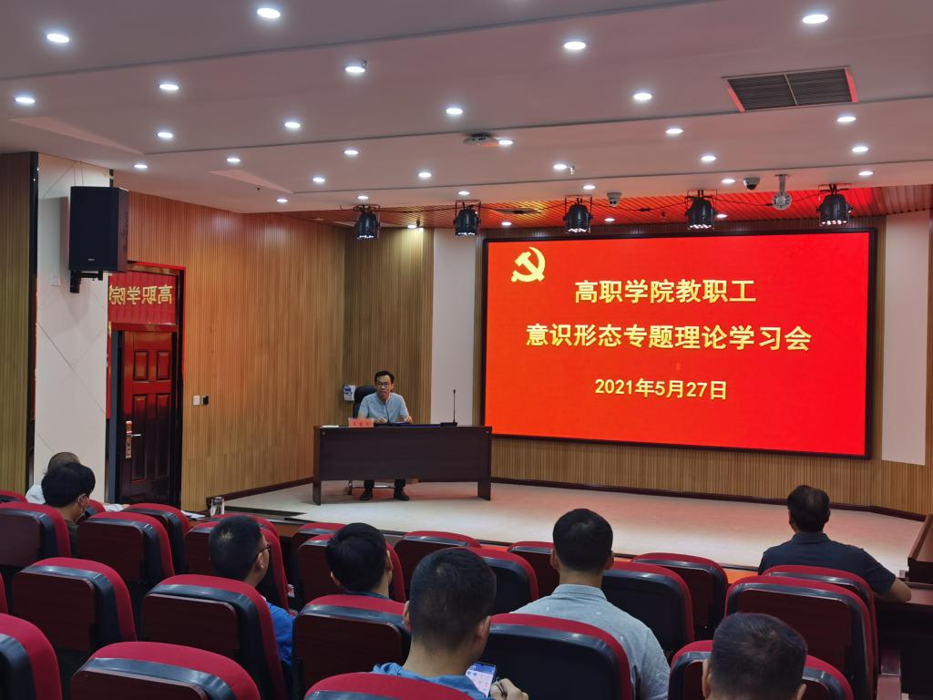 5月27日下午,高职学院在综合楼四楼报告厅举行意识形态专题学习会。学院领导班子成员及教职工共100余人参加。学习会由党委书记王吉田主持。