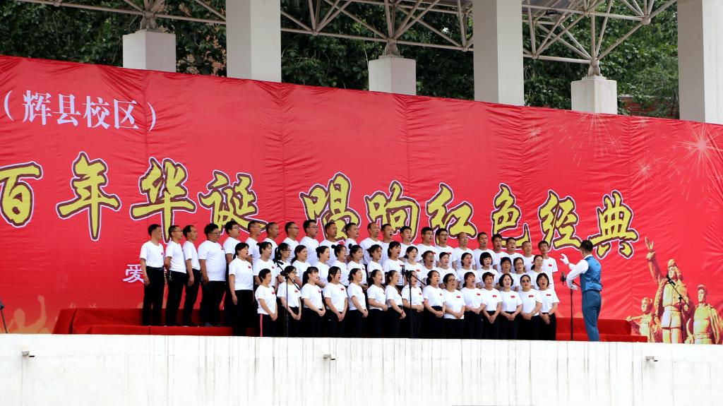 教工第二代表队的一曲《我们走在大路上》拉开了合唱比赛的帷幕;经典歌曲《没有共产党就没有新中国》、《唱支山歌给党听》唱出了人民群众的心声,表达了对党、对国家的深厚情感;《走向复兴》《光荣与梦想》《歌唱祖国》的嘹亮歌声,唱出了滚滚发烫的赤子之心;《十送红军》《映山红》,一首红歌记录一段峥嵘岁月,一次演绎致敬一段光辉过往;在教工第一代表队《解放区的天》《团结就是力量》的歌声中,合唱比赛落下帷幕。