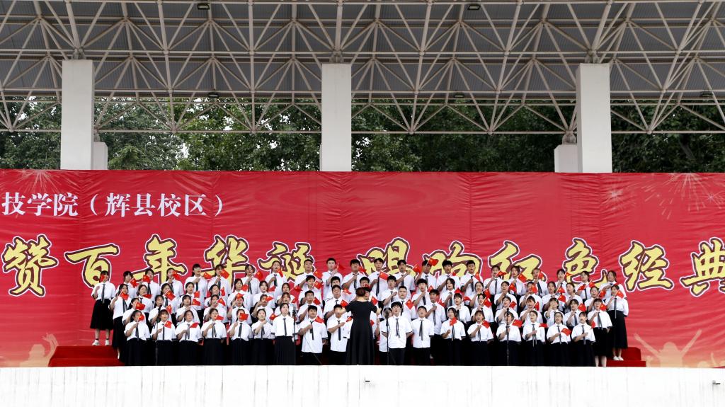为庆祝伟大的中国共产党成立100周年,高职学院于6月17日下午在学院操场举行“礼赞百年华诞,唱响红色经典”合唱比赛,师生共8个代表队用歌声回顾党的伟大历程,用旋律致敬百年峥嵘岁月。校学工部部长、学生处处长翟居怀,团委书记于江傲及高职学院党政领导班子、全体在校师生三千余人参加了此次活动。