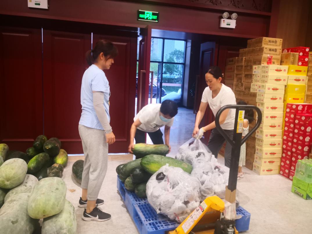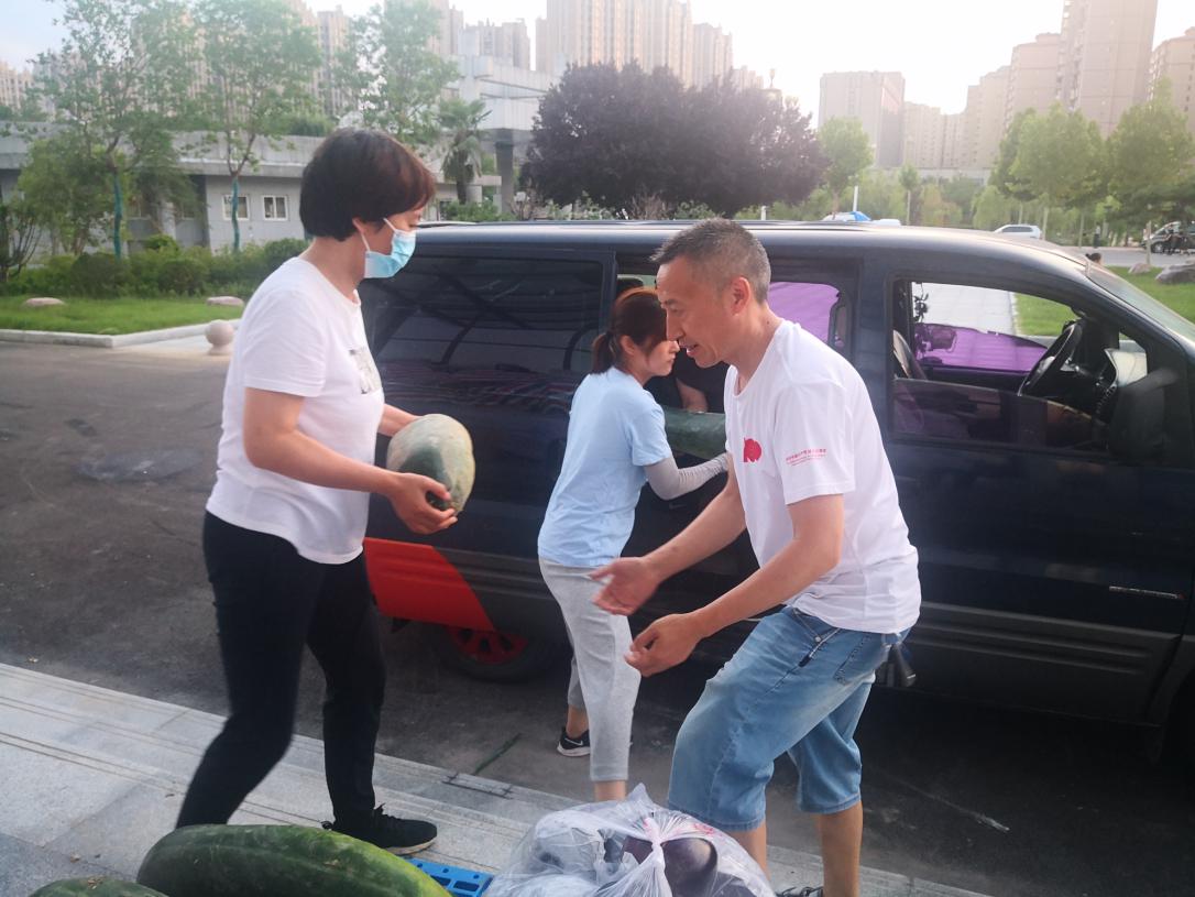 家在辉县的党员同志早早来到学院综合楼前等待。运送物资车辆到校后,大家争先恐后投入到卸载工作中,分门别类整齐摆放在综合楼前,并做了认真清点统计。