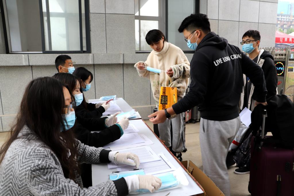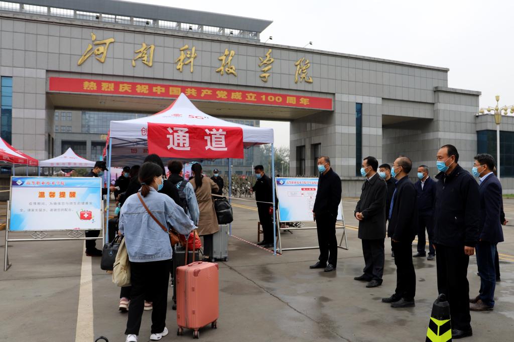 学院领导王吉田、乐玉忠等深入各系报到处,与同学们亲切交流,询问返校与学习情况,现场指导工作,强调要严格按照学校返校开学工作方案、疫情防控工作要求,详细掌握学生返校前十四天内的行动轨迹和健康状况,做到程序规范、手续完备。各系辅导员指导学生按时填报个人体温和健康状况,保障防控安全。