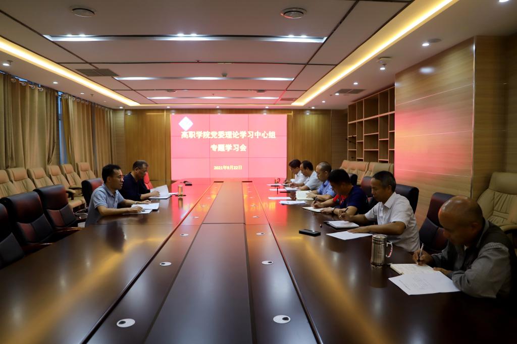 9月22日下午,高职学院党委理论学习中心组在综合楼十楼会议室举行年度第八次集中学习会,学院全体领导班子成员参加会议。学习会由党委书记王吉田主持。