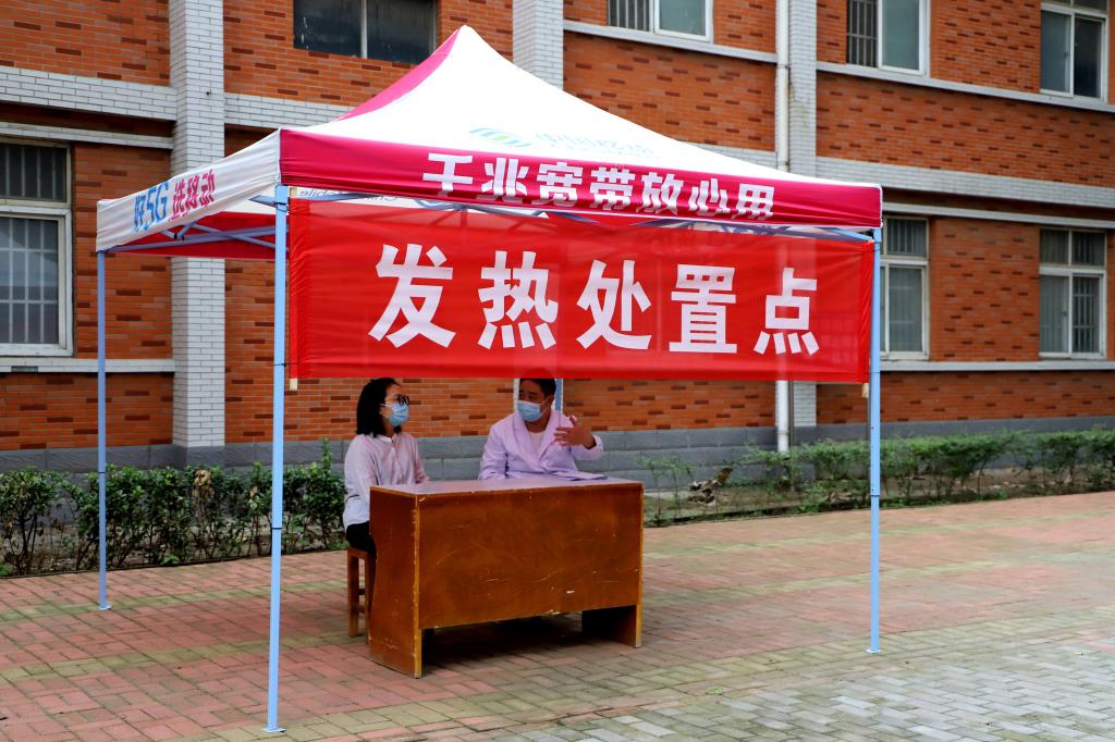 演练现场还设置了发热处置点,由校医候诊提供就诊方案。