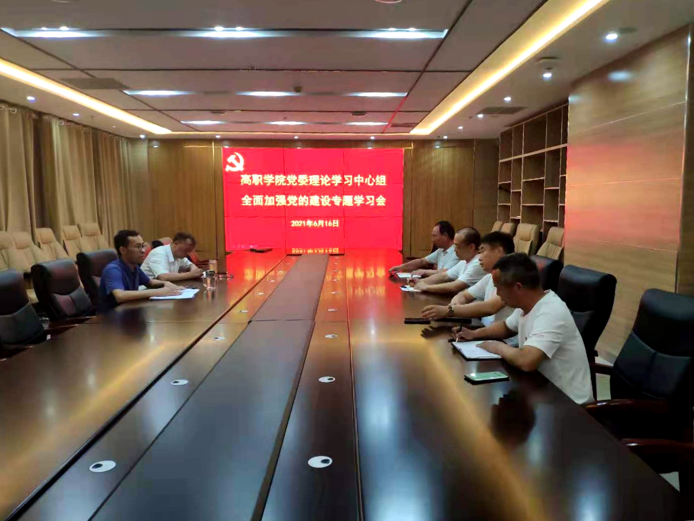 6月16日晚,高职学院党委理论学习中心组在综合楼十楼会议室举行全面加强党的建设专题集中学习会,学院全体领导班子成员参加学习。学习会由党委书记王吉田主持。