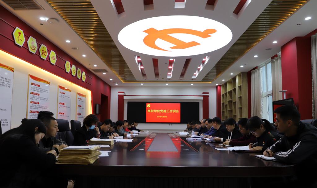 为积极推动党史学习教育扎实有序开展,认真落实学校2021年党建工作会议精神,4月20日下午,高职学院在综合楼党建活动室召开年度第二次党建工作例会。学院党委书记王吉田,副书记孙敬坤、申长奎出席会议。各支部书记、副书记、组织委员、党建组织员等20余人参加会议。