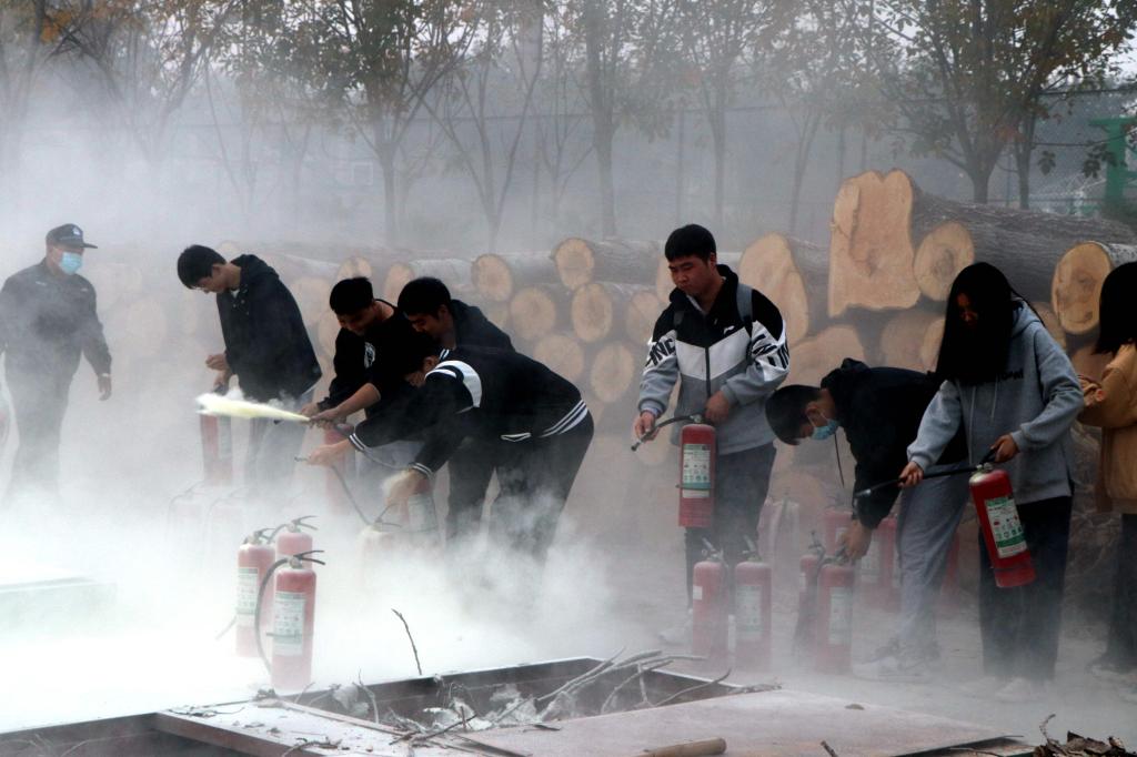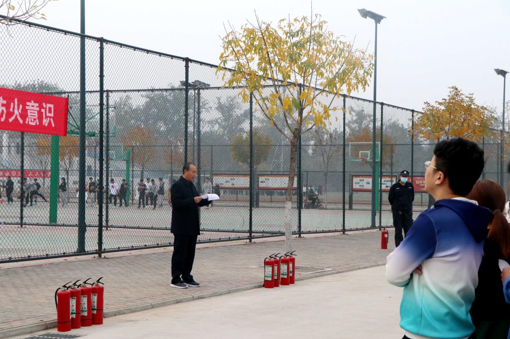 为认真贯彻落实河南省教育厅办公室转发河南省防火安全委员会关于印发《2021年“119”消防宣传月活动方案》的通知要求,加强高等职业技术学院消防安全宣传教育工作,落实消防安全责任,建设平安校园,11月4日下午,高等职业技术学院在东区隔离带开展2021年“119”消防宣传月消防演练。消防演练由学院副院长宋合成主持,保卫科、学生科牵头,教职工代表、学生代表、全体楼长以及宿管、餐饮、室外保洁服务人员等进行现场学习。