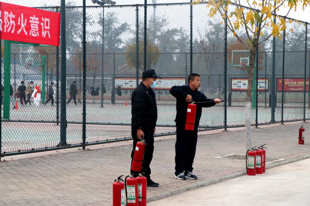 保卫科负责人细心讲解了灭火器的组成部分、內容物性质与特征、火焰性质与特征、灭火的要点和灭火器使用手法,并现场指导全体参加者亲自体验操作灭火器,增强安全防火意识,让大家进一步了解掌握火灾的处理流程,提升在处理突发事件过程中的协调配合能力。