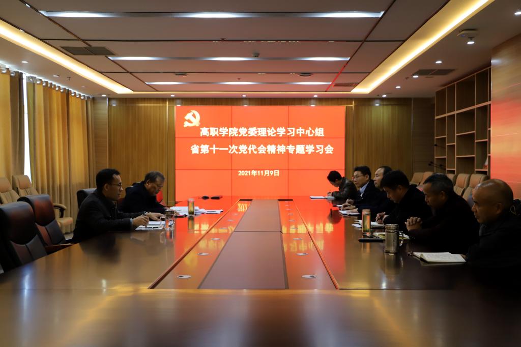 11月9日上午,高等职业技术学院党委理论学习中心组在综合楼会议室举行年度第十次集中学习会,专题学习省第十一次党代会精神。学习会由党委书记王吉田主持。