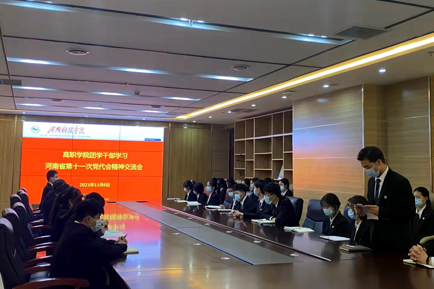 11月6日下午,高等职业技术学院组织团学骨干在综合楼十楼会议室召开省第十一次党代会精神学习交流会。会议由团委书记李孝彦主持,共有40余名团学骨干参加了学习交流。