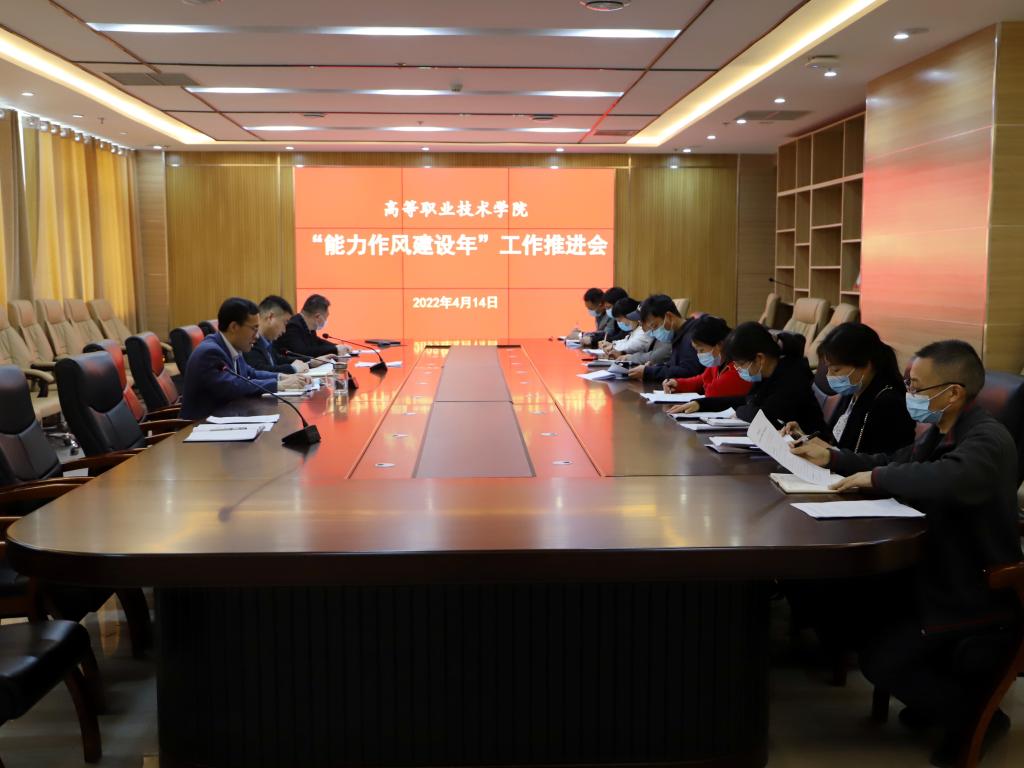 4月14日下午,高等职业技术学院在综合楼第一会议室召开“能力作风建设年”活动阶段性工作推进会。学院党委书记王吉田、副书记申长奎出席会议。职能科室党支部书记、各系党支部副书记和相关职能部门负责人等10余人参加会议。