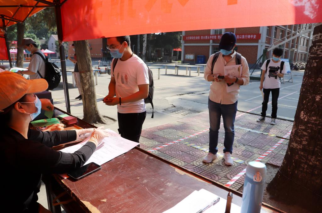 每批毕业生返校当天,在学院门口进行全面消杀、核验身份并更换口罩,进入校门后可在文化广场和行政楼范围内完成全部手续流程,领取宿舍识别卡。整个流程2小时完成,步骤简洁方便。