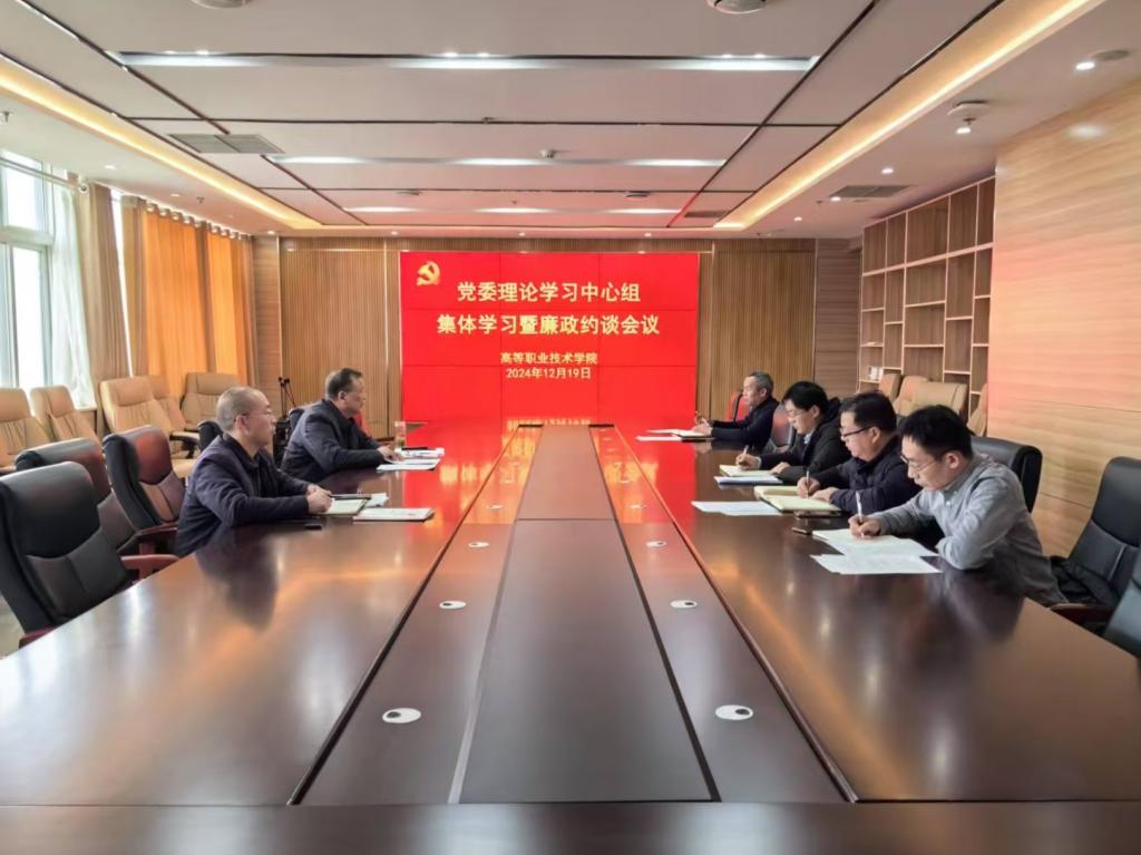 12月19日上午,高等职业技术学院在综合楼十楼第一会议室召开党委理论学习中心组集体学习会议,学院班子成员参加会议。会议由学院党委书记孙敬坤主持。