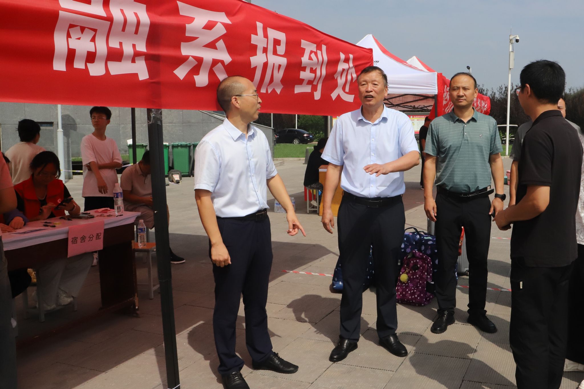 副校长乐玉忠一行来到东大门前,查看指导迎新工作。在东大门,乐玉忠看望慰问正在执勤的交警,对当地政府对迎新工作的大力支持表示感谢;在各系报到处,询问各专业报到情况并指导工作;在新生宿舍,与入住新生及学生家长亲切交流。他要求学院相关部门一定要做好各项服务管理工作,为新生营造温馨的家的氛围,帮助新生尽快适应大学生活,确定学习目标,快速进入新的学习生活阶段。