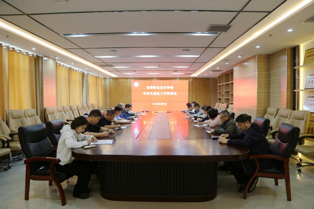 为进一步贯彻落实党中央、国务院就业政策,扎实做好2025届毕业生就业工作,5月9日上午,高等职业技术学院在综合楼第一会议室召开2025届毕业生就业创业工作推进会,学院党政领导班子、招生就业科、各系负责人参加了会议。