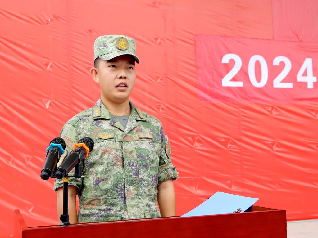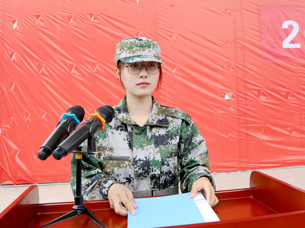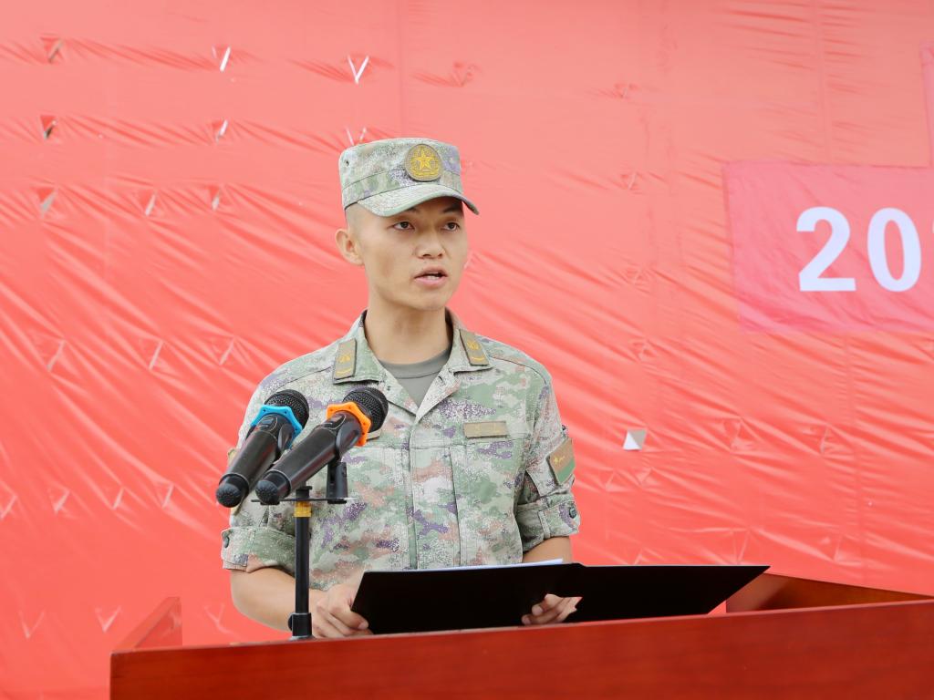 计算机网络技术241班牛会凯代表参训学生发言,表示军训既是对意志的磨炼,也是对精神的洗礼,会服从纪律、刻苦训练,圆满完成每一项任务。