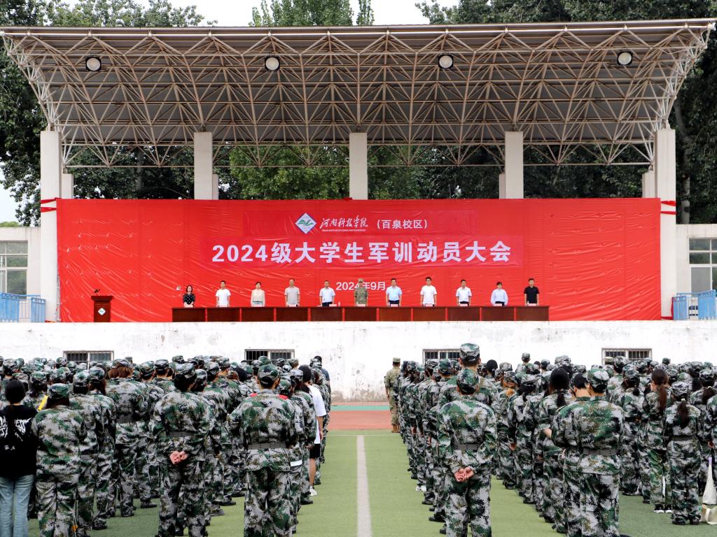 9月16日,河南科技学院百泉校区2024级大学生军训动员大会在田径场举行。学院党委副书记张高峰、副院长王铁固、32145部队副连长邢洪运出席,高等职业技术学院相关科室负责人、辅导员、教官、2024级全体新生参加。动员大会由王铁固主持。
