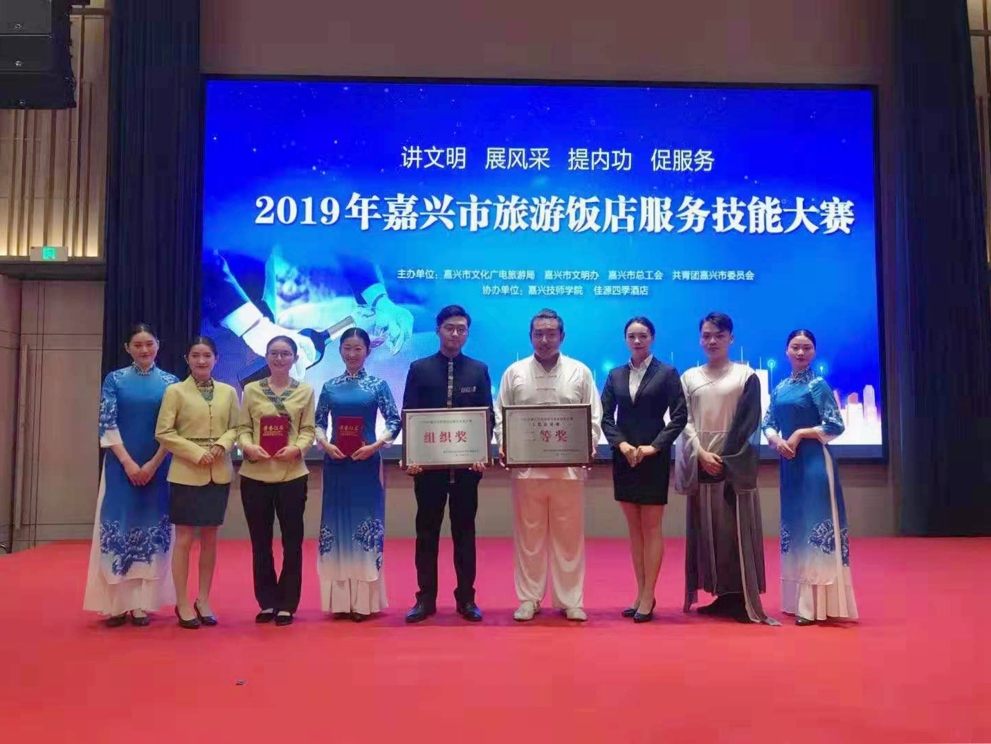 10月31日,2019年嘉兴市旅游饭店服务技能大赛在浙江嘉兴举行,60名选手在客房服务(中式铺床及小景设计)、餐厅服务(中餐宴会摆台)、餐厅服务(西餐宴会摆台)等3个项目展开角逐。在浙江云澜湾旅游发展有限公司顶岗实习的高职学院经济与管理系旅管专业学生李佳雨代表实习单位参赛,并在中餐宴会摆台项目中表现出色,荣获三等奖。