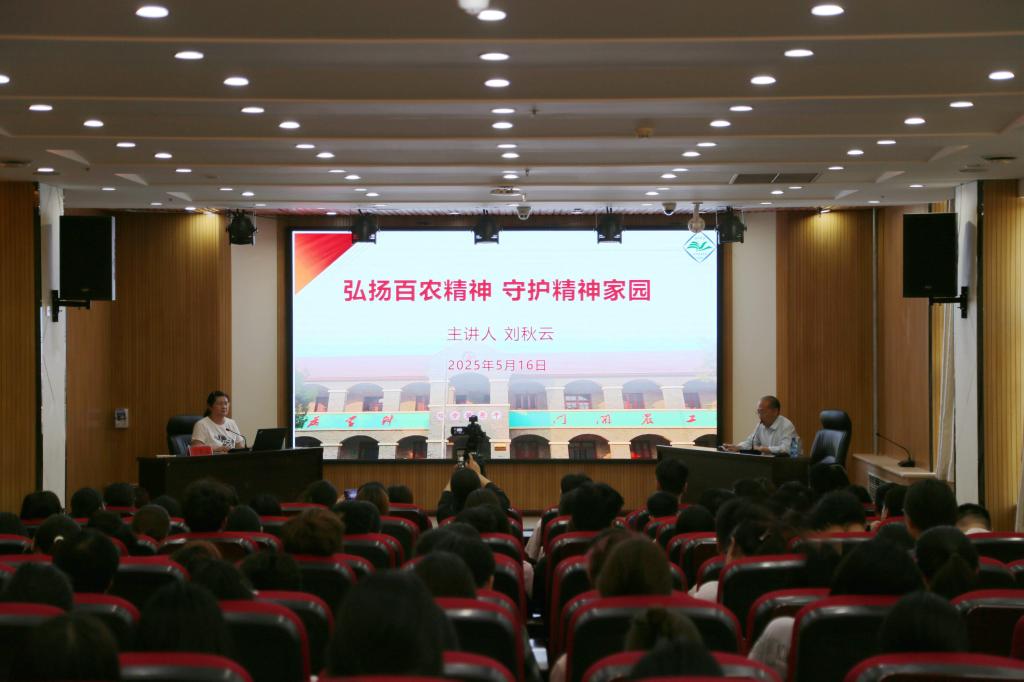5月16日下午,高等职业技术学院邀请教育科学学院副院长刘秋云到综合楼四楼报告厅举办“弘扬百农精神 守护精神家园”主题讲座。高等职业技术学院教师代表、学生代表一百余人聆听了讲座。
