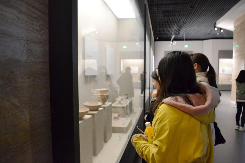 同学们抵达博物院后,在各自负责人带领下跟随讲解员正式进行参观。平原博物院是集博物馆、档案馆、史志馆、城建档案馆于一体的特色博物馆。馆内有19个展厅,分别为布置基本陈列、地方历史、文物专题、自然资源、建设成就和各类艺术作品等展览。在参观过程中,讲解员告诉大家,每一件历史作品都是有生命的,从侧面反映出人类各个历史时期的社会活动、社会关系和背后的文化,更是人类宝贵的历史文化遗产和瑰宝。